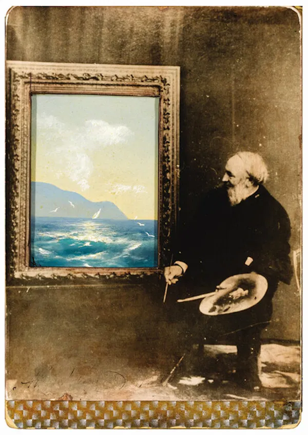 What makes those tiny birthday paintings even more remarkable is their innovation. By embedding painted seascapes into photographs, Aivazovsky effectively became an early pioneer of mixed media, decades before avant-garde artists would experiment with collage and photomontage.