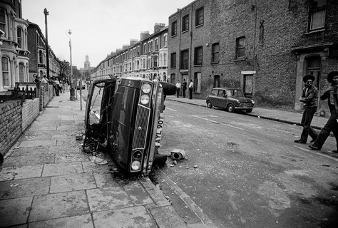 At around 4 pm, two police officers stopped and searched a minicab in Railton Road. By this point, Brixton Road, also known as Brixton High Street, was filled with angry people. Police cars were pelted with bricks, and confrontations spread quickly.